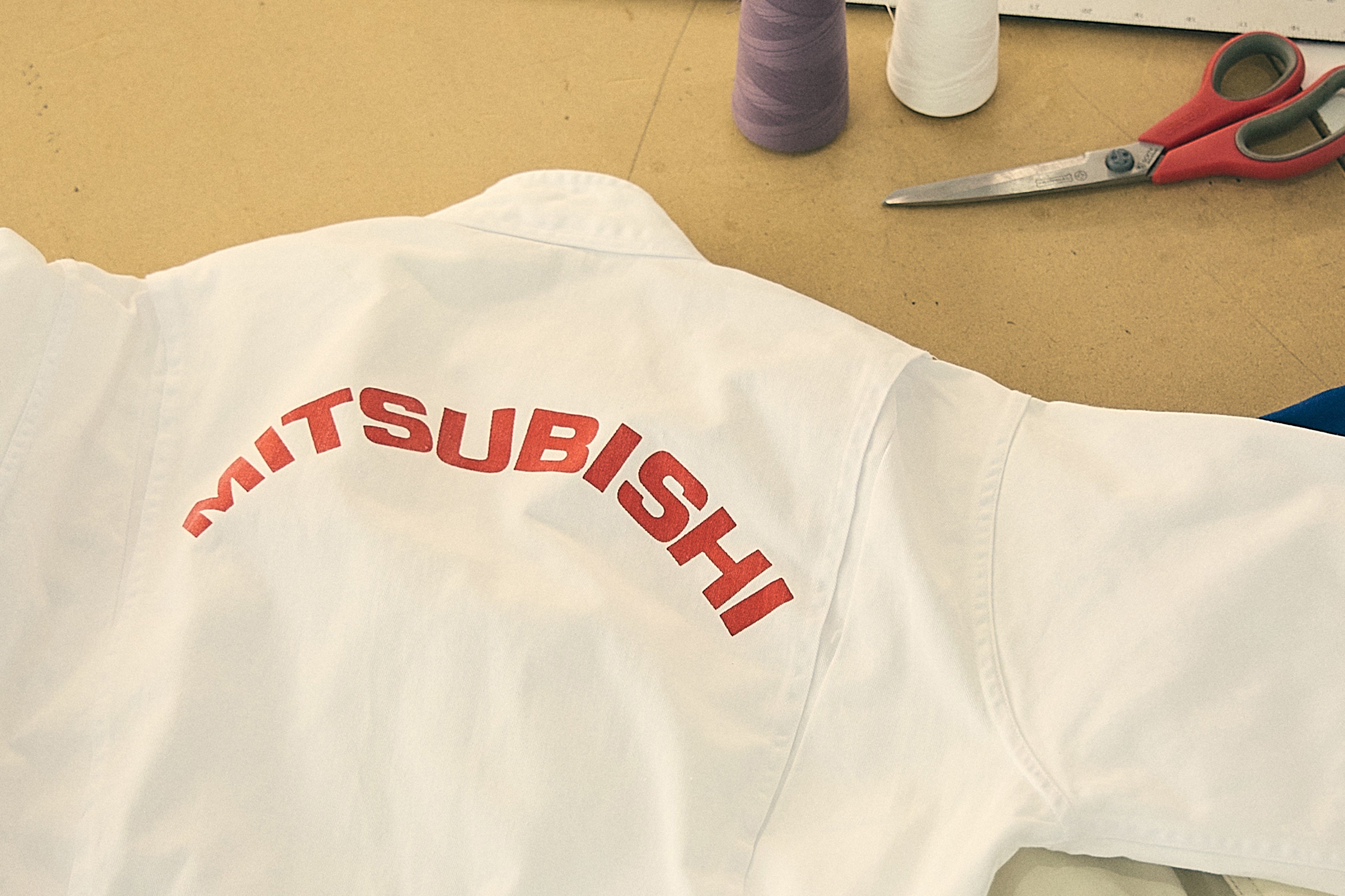 Fabric that's been through real work in real garages. We source it, cut it down, and apply it to each piece as design details marked by real use.